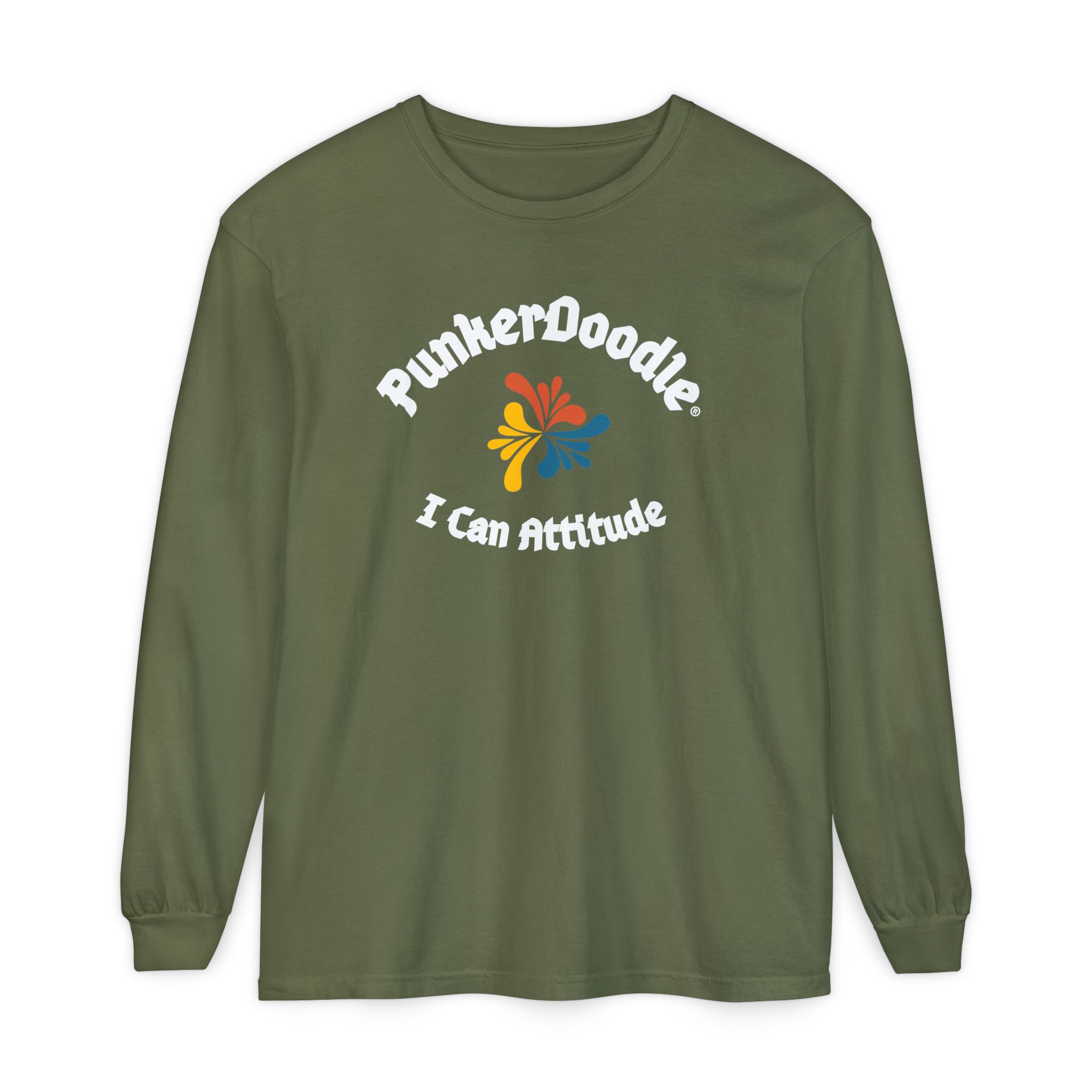 The PunkerDoodle® I Can Attitude® Long Sleeve Tee is built for real life – garment-dyed, pre-shrunk, and soft from the first wear. Relaxed fit, ribbed cuffs, slightly longer length. The kind of shirt you reach for without thinking.